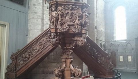 这座修建于中世纪时候的大教堂规模宏大,虽然今天是火灾之后重建的,但是依然能够感觉到它历史的厚重,背后是一个高大的塔楼,很宏伟。