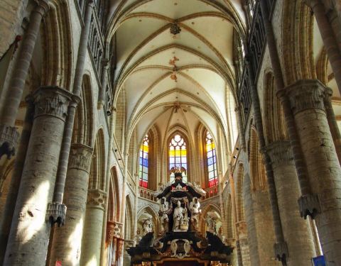在巴洛克风格的主祭坛内,可以看到精心制作的木坛、漂亮的彩色玻璃窗、绘画和著名的风琴它位于历史中心,建于13世纪,用图尔内地区的蓝灰色石头建造而成。教堂中央的一座大的中央塔,周围有塔楼。在巴洛克风格的主祭坛内,可以看到精心制作的木坛、漂亮的彩色玻璃窗、绘画和著名的风琴。