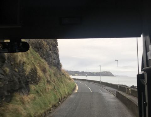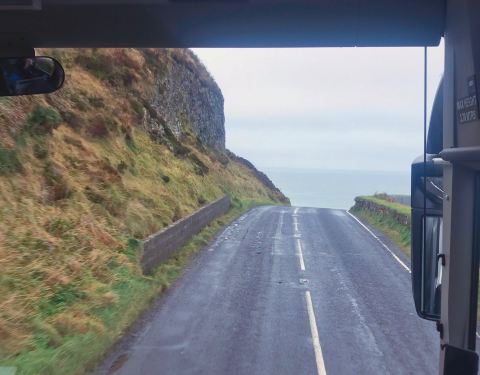 报的旅行团一路车往索桥和巨人之路的路上一侧就是蔚蓝的海岸线,有些时候甚至隔着岛屿还能看到苏格兰。整个海岸线的地貌也十分的崎岖,无数个转弯口都可以看到直接的悬崖峭壁,有种随时要掉下去的感觉 而有些路段...