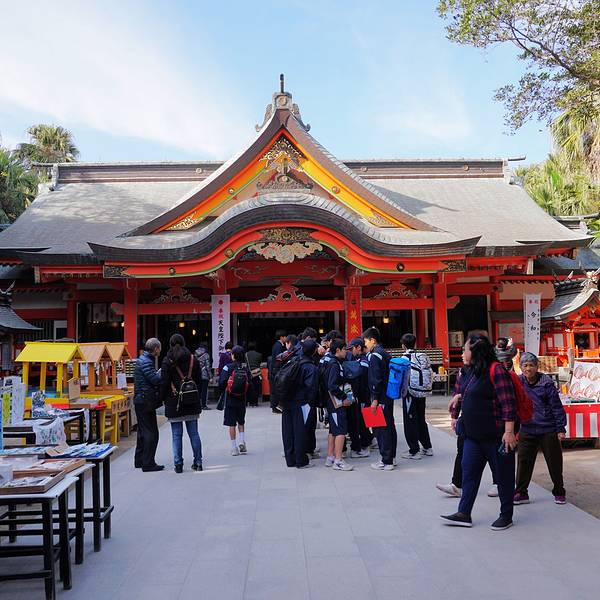 青岛神社在日南海岸上,抵达神社必须先穿越一条由碎贝壳跟石阶交织而成的河床,这条路就像海上的参道,通向神的境界。青岛神社被繁茂的植物包围,专用以供放执掌森林特产的神祗。 江户时代的青岛神社是禁止一般人进入的圣地,这里是祈求姻缘和恋爱成就的能量之地。想求得良缘的人不要错过祈求姻缘长久的青岛神社。