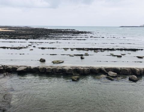 这个青岛完全是个真岛,和我们的是个城市不一样,这里主要景观是退朝之后礁石上留下的痕迹像搓衣板,成因是九州东海岸的暖洋流,碰到独特的断裂和岩石排布,长期冲蚀之下,礁石形成了少见的形状。岛上除了自然景...