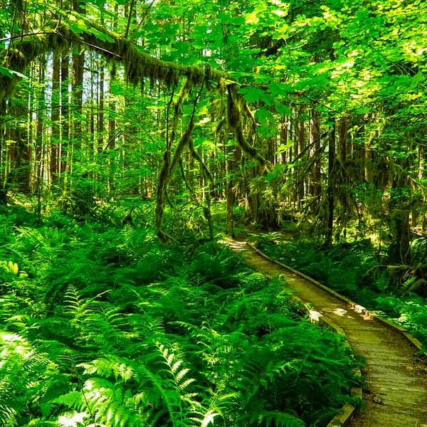 奥林匹克国家公园拥有温带雨林,作为国家自然遗产合并了北美现存较大的自然保护区——太平洋海岸荒原,除此之外你还可以饱览冰川覆盖的雪山,大自然原始粗犷的美得以留存,也因此成为野生动物理想的栖息地。 1. .飓风岭(Hurricane Ridge) 飓风岭入口因为容易走而较受欢迎,在道路尽头,可以眺望奥林匹斯山(Mt. Olympus)和其他主峰的壮丽景色。幸运的时候还可以看到罗斯福麋鹿。除了夏季适合徒步之外,这里还有国家公园内的两大滑雪道之一,是冬季滑雪名地。 2. 新月湖(月牙泉) 新月湖因适合划船和垂钓而深受大家喜爱,这里有公园内较古老的木屋别墅,从新月湖南岸出发,徒步走过1英里的古老森林,便可到达玛丽米尔瀑布(Marymere Falls),又是一番壮阔的景象。 3. 可可河雨林(Hoh River Rainforest) 位于长达19英里的可可河大道(Hoh River Road)尽头的可可河雨林,是一座长满蕨类植物和覆盖苔藓的大树的托尔金式迷宫,这里还是电影暮光之城(Twilight)的拍摄地,想要熟悉这一区域复杂的地貌和精妙的自然生态系统,更可以前来徒步露营。 4. 奎纳尔特湖(Lake Quinault) 奎纳尔特湖是一个被郁郁葱葱的群峰环绕的美丽冰湖,不仅是垂钓划船的名地,更因为生长着一些全美较古老的树木而闻名于世。这里旅店餐厅一应俱全,时间充裕的话不妨小住一晚。