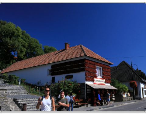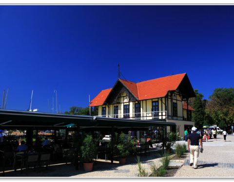 沿着缓缓的坡道向山上走,窄窄的石阶路,成排矮矮的盛开着鲜花的窗台,常常让我重拾四年前在哈尔施塔特的记忆。有一点点相似。这个蒂豪尼小岛一定也是因为众多游人的纷至沓来,让它再也不会有往日的宁静与闲适。所以,可以理解哈尔施塔特小镇上的居民对于络绎不绝、川流不息的游客的排斥。 快到山顶,就能远远望见白色双子塔——班尼帝克汀修道院,岛上的标志性建筑。修道院内部需要买票入内(成人500福林,学生250福林)。一路上会遇见太多颇具规模的教堂,所以,这个没有入内参观。 修道院后面的观景平台正对着巴拉顿湖。景色不错,晴空下,蔚蓝色的湖面上白帆点点,不时有飞鸟掠过。旁边还有三人组小乐队在演奏匈牙利的乐曲,引得不少老外游客驻足。中国游客一般总是步履匆匆。远远地望见小路的尽头有一个蘑菇顶的小房子,像个小城堡。担心时间不够,没有走过去。