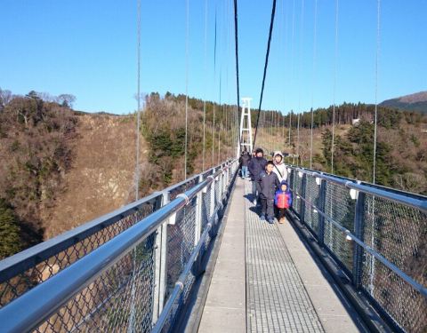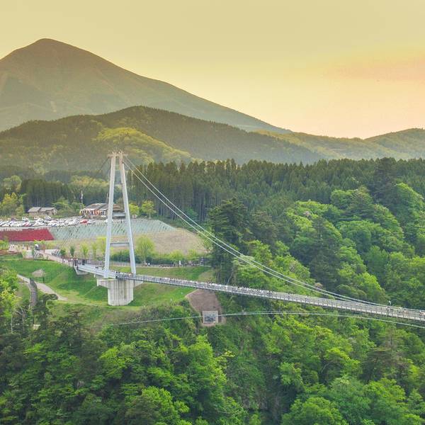 被誉为是天空步道的九重“梦”大吊桥是日本第一高的步行吊桥。于2006年10月30日开通,全长390米,高173米,宽1.5米。桥上有360°的大全景视角,可以欣赏到震动之瀑的雄雌双...牧场附近就是著名的九重“梦”大吊桥。
