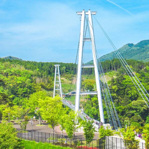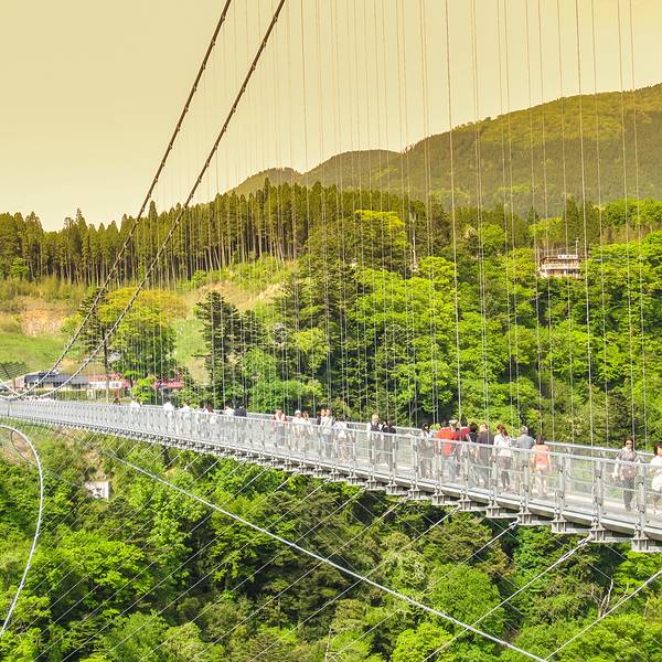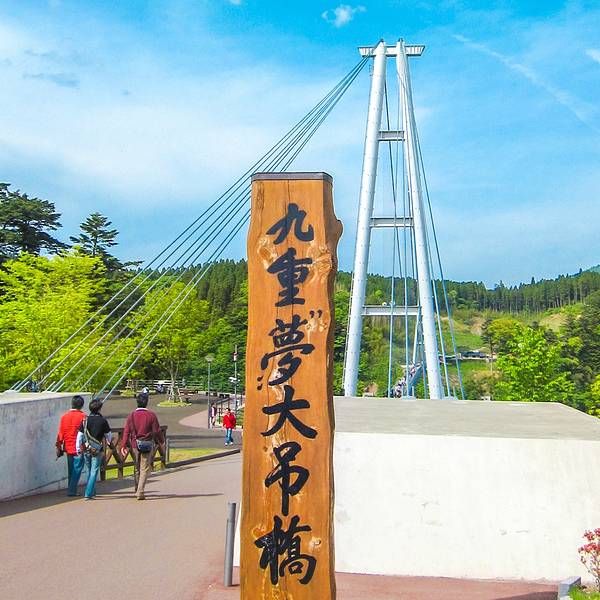 被誉为是天空步道的九重“梦”大吊桥是日本第一高的步行吊桥。于2006年10月30日开通,全长390米,高173米,宽1.5米。桥上有360°的大全景视角,可以欣赏到震动之瀑的雄雌双瀑。震动之瀑也是“日本百选名瀑”之一。