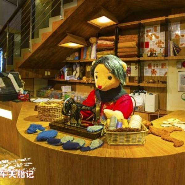 欣赏设计师制作泰迪熊的过程,与著名的“俊俊熊”系列合影留念。