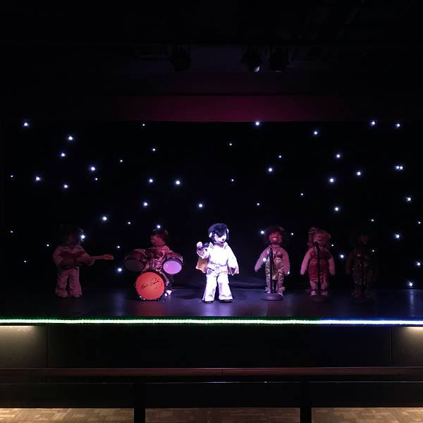 泰迪熊剧场里是模拟猫王的演出,有相应的演出时间。一层是售卖纪念品的地方。从一层可以走到室外,有一个超大的建筑泰迪熊。公园不大绿化得不错,有一些熊的雕像,或在烧烤或是钓鱼。泰坦尼克号沉没1912TV 问世 1926迪士尼1955年开场登月 1969香港回归1997猫王剧场蒙娜丽莎熊沉思者熊梵高熊卓别林熊杰克逊熊建筑风格烧烤一家熊垂钓爱好熊,原谅我没照到钓鱼的主角 展开