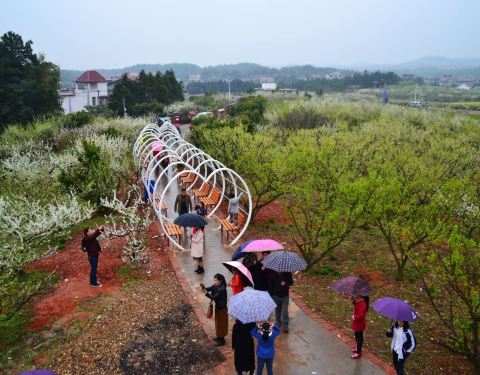 总的来说三月下旬或四月初,选个太阳天去是最合适的。我们是周末上午阴天,中午有雨过去的。离南昌约几公里,不走高速,沿途可一览田野村庄景色。 凤凰山,不是山,只是土包,桃花园,不仅桃花,还有梨花与油菜花,这个搭配倒是不错。尽管雨天,去的人也不少,马路边停车选空位也不好找。见到未完全盛开的桃花,游人也是好兴奋,这大面积的花木,本身就是不错的景色。 给点建议:门票30元,大可不必,可通过景区内增设农家乐解决用餐,建些小卖部卖游人所需物品等增加收入。