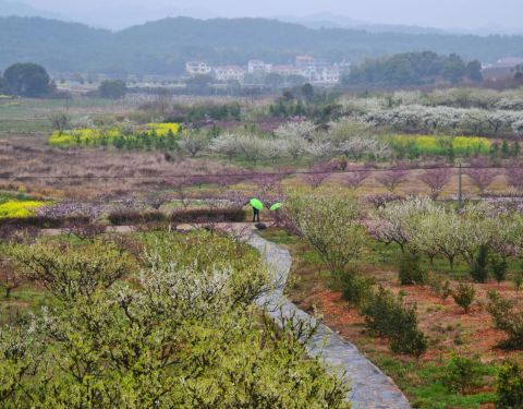 总的来说三月下旬或四月初,选个太阳天去是最合适的。我们是周末上午阴天,中午有雨过去的。离南昌约几公里,不走高速,沿途可一览田野村庄景色。 凤凰山,不是山,只是土包,桃花园,不仅桃花,还有梨花与油菜花...