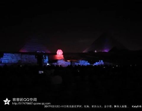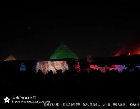 来到开罗游览金字塔,不仅要在白天领略金字塔的雄伟,也要在晚上观看这里的声光秀。届时金字塔会呈现出各式各样的颜色,而且会有激光电影在金字塔的表面放映,非常的好看,其中绝大部分都是描述古埃及文明的影片...