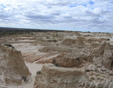 这里是茫茫的戈壁滩,风沙的侵蚀将整个地面切割开来形成了一个个丹霞地貌,非常的绚丽奇异蒙哥国家公园是澳大利亚悉尼附近著名的荒漠公园。这里是茫茫的戈壁滩,风沙的侵蚀将整个地面切割开来形成了一个个丹霞地貌,非常的绚丽奇异。觉得借辆越野车在此游览一番。