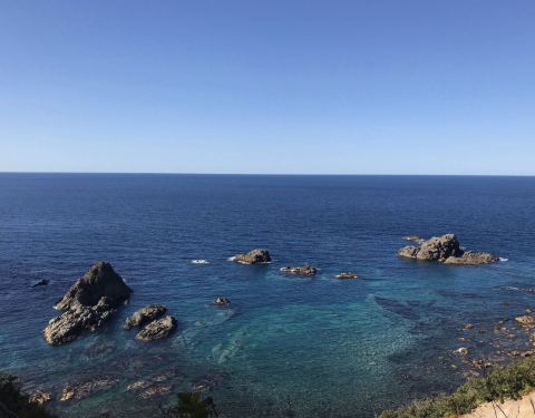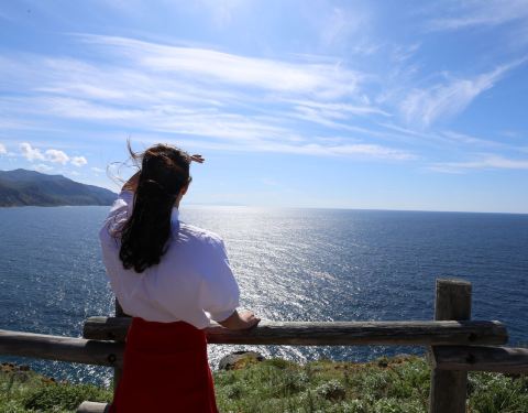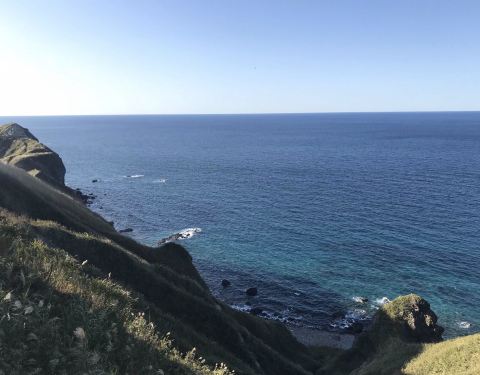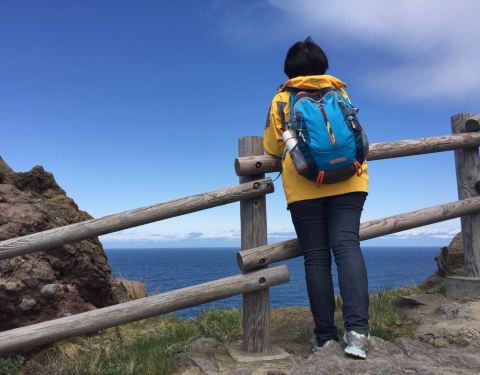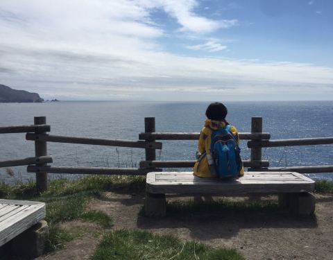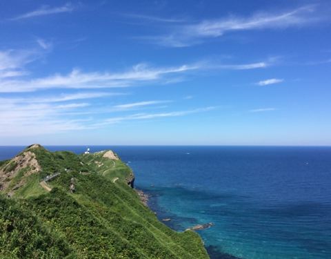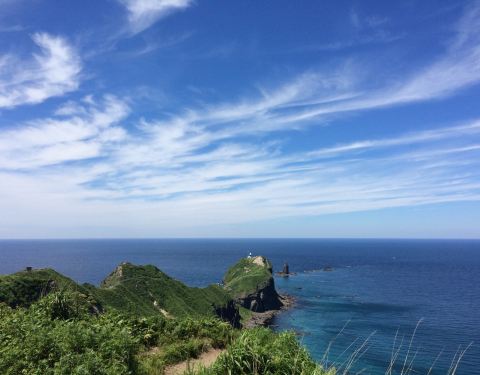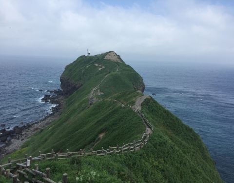不过车离开小樽半个小时不到,就沿着海岸线前行,沿途的海景非常美丽! 当然这个门禁制规定纯粹是以前天涯远不远,你到了神威岬就知道了。 我们去神威岬的时候是多云转晴。 从小樽有直达的大巴,一天只有三班,最晚从神威岬回小樽的发车时间是15:15分,因此,如果你要看日出日落只能是包车!日本包车很贵。 不过车...天涯远不远,你到了神威岬就知道了。 我们去神威岬的时候是多云转晴。 从小樽有直达的大巴,一天只有三班,最晚从神威岬回小樽的发车时间是15:15分,因此,如果你要看日出日落只能是包车!日本包车很贵。 不过车离开小樽半个小时不到,就沿着海岸线前行,沿途的海景非常美丽! 我们到神威岬后,走到那个经典的 “女人禁制之地”的大门天更蓝了! 当然这个门禁制规定纯粹是以前。 现在女孩子可以无限制的去神威岬! 神威岬实际是一个伸向海的悬崖,从停车场下来顺着步道就可以走到那个门,过了门顺着狭长的山脊小路可以走到灯塔的尽头,在那里你可以超过300度的视角看海,有点天涯的感觉! 展开