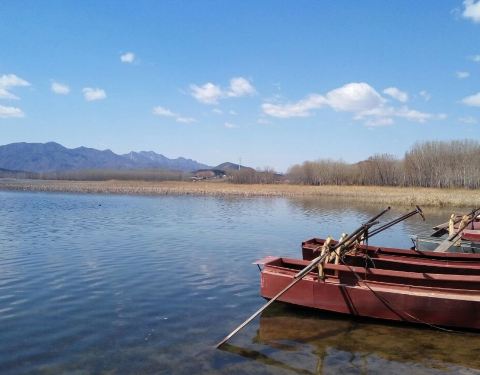 怀柔水库是给北京人供水的水库,湖水清澈透明,库区保护严谨,远山之下清波涟涟,绕着库区,可以多个...