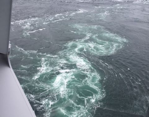 乘JR到呜门站下了后,在站内稍耽搁了一下,到站外的巴士站一看,没一个人在等去呜门公园的车,下班车要将近一个小时后才有,这才知道为啥下车后部快步向车站走,日本的公交和JR的连接是用心在安排,因为下一班车正好要近一小时后才能到。不想空等一个小时,只好打的去了。到码头后购票上船,真的是非常震撼的大旋涡。