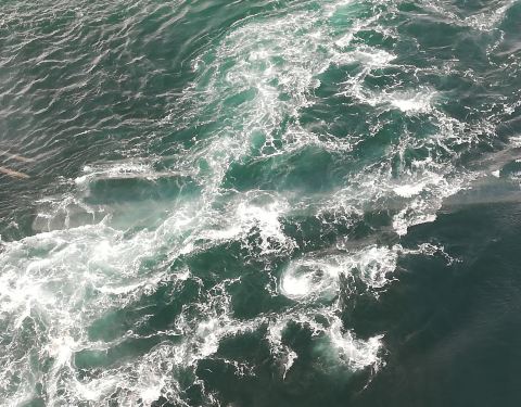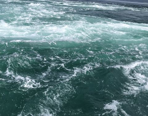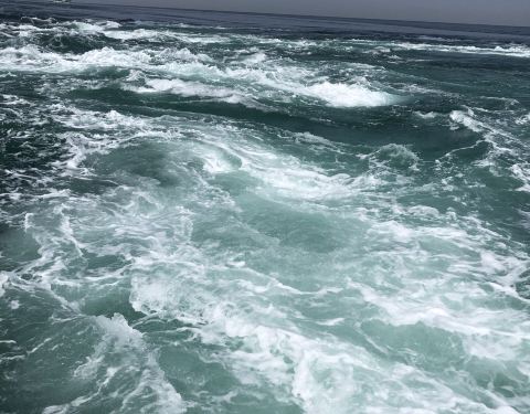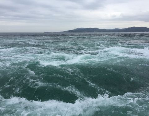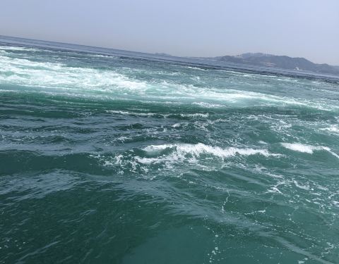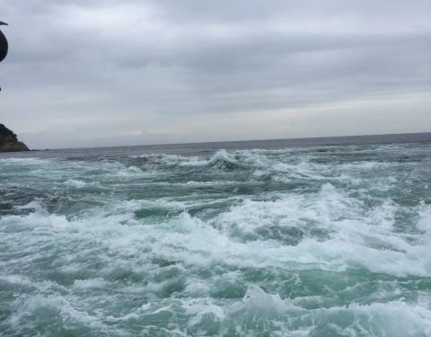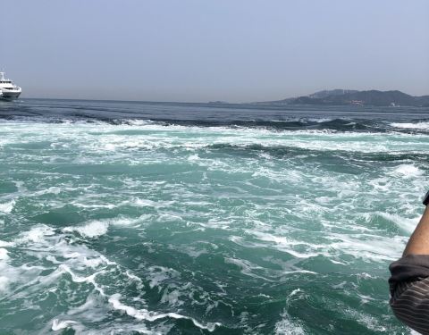 鸣门海峡的漩涡,据说是亚洲最大的海潮漩涡,一到德岛的第2天我们就,预约了坐船出海去看漩涡。船公司会在海潮交汇的时点前,开船出海去,停在海潮交汇处。大家可以从船上很近距离的看汹涌的海潮交汇,还满壮观的...