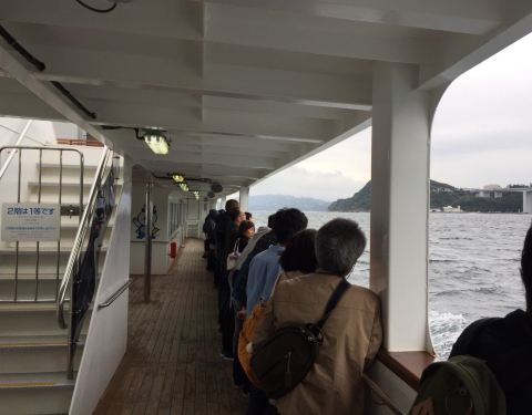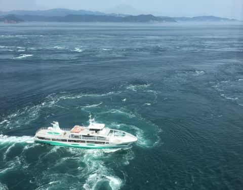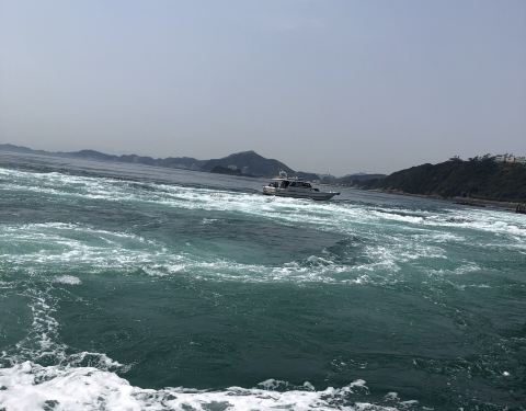 非常非常推荐的景点,如果来到鸣门,必不可少的活动就是去乘邮轮近距离观看漩涡。其实邮轮也分为两种,大船和小船,大的话更便宜,人多,但是不会晃,小船票价贵看的也好一些,但是会容易受浪影响,这次乘了大船,看到很多小船反而更靠近漩涡,感觉小船会更好一点。 一个来回大概要50分钟左右,总之开船一路上照片都没停过,这才是真的赞的景色,切记来的时候一定要查好表,赶在满潮的时间来的话基本上一个漩涡连一个漩涡,一直不停,绝对看到过瘾。 另外如果上鸣门大桥也可以直接从顶部看漩涡,不过非自驾或跟团的话会比较悲剧,路有点远,可能错过满潮时间。