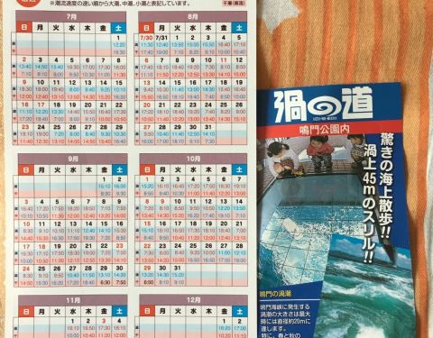 我很喜欢大海,去海边玩总是非常高兴的。鸣门涡潮是世界三大之一哦,很值得一看。在大冢国际美术馆中途逃出来看一下,这里附赠在美术馆拿的2017下半年的时刻表,安排行程可以注意一下。每天都是不同的观潮时间,...