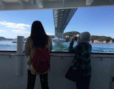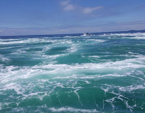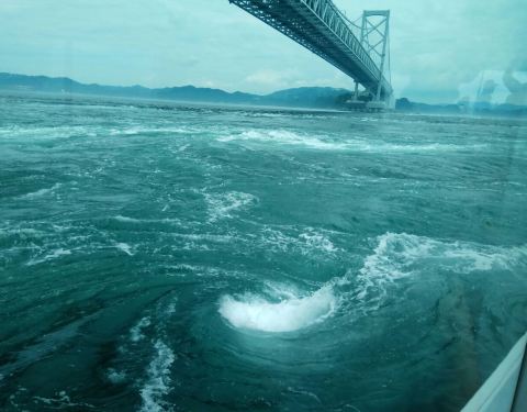 渦潮每天有不同的时间发生,只有在一定时间段才能看到,我们选择在桥上的渦之道观看,虽然不大,还是可以看见,海风很大,不怕晕船的可以坐船看得更清楚