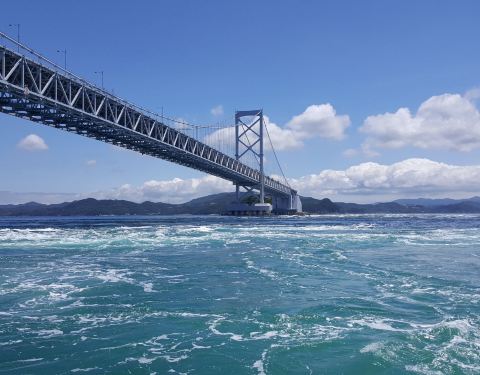 在日本本州與四囯之间,相隔一个海峽,是為濑户內海,而連结兩地者,实靠数座大橋相連,而当中連络德岛與本州的就是鳴门大橋,然此橋下方水流喘急,每日皆会形成巨大之旋涡,此乃該處之特点,而渐漸因此亦成為旅遊勝地,無論乘船观涡,或是在大橋上之涡之道观渦,也各具特色,是四国德岛之必遊项目。