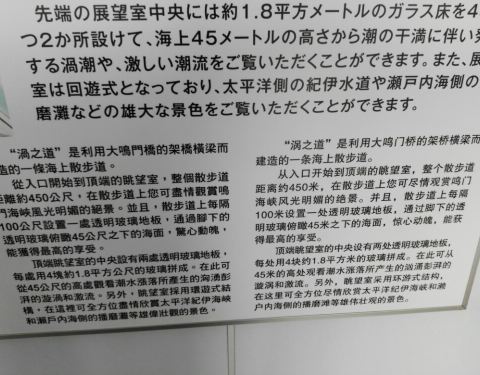 ...景观,那就是中外闻名之旋涡之潮,從大橋中间之涡之道可观覽壮观景像,是遊覽德岛者绝对容错过之地