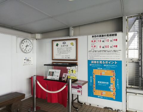 我很喜欢大海,去海边玩总是非常高兴的。鸣门涡潮是世界三大之一哦,很值得一看。在大冢国际美术馆中途逃出来看一下,这里附赠在美术馆拿的2017下半年的时刻表,安排行程可以注意一下。每天都是不同的观潮时间,请看照片里图表。 出海前静谧的海岸线,在海中央被潮流所破,形成巨大的漩涡,看起来非常有趣的样子,住在这里的小鸭子大概也很喜欢这个,在一个漩涡里扑进扑出,超可爱!漩涡盘踞在鸣门大桥之下,形成了动静咸宜的对比,是一个很值得看的景点。巧心思在于售票处也是漩涡状的,不知道伊藤润二的漩涡灵感来源是不是鸣门呢? 这里不止一个码头,我们坐的船是美术馆出门右手边直行,然后右转的那个,船票1550元。