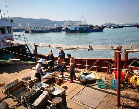 这里的渔船不算大,可以坐船出海兜风,很多渔民辛勤地工作着。