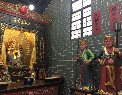 沿着西堤道一路走,看着指示牌找着了藏身于居民区之中的洪圣庙。在市区湾仔也有个洪圣庙,但感觉比长洲这个有年头多了。许是长洲的洪圣爷才翻新不久,洗的干干净净的脸庞穿着崭新的衣服,完全没有岁月香火的痕迹。