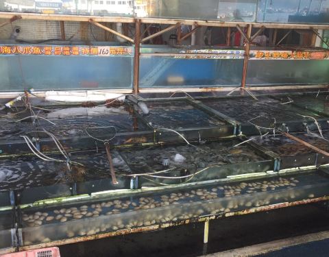 长洲海鲜街位于渡轮码头附近,走路过去两分钟就到了。进去会看到不同的海鲜酒家,门外有大鱼缸养着不同的海鲜,即点即做,价格就不大便宜。