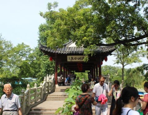 招牌很大,雄跨东南二百州,看的我双眉一扬。这个景区和金山景区几乎是两个店铺一个老板,因为范围近乎重叠,至多百花洲向外扩散一点。而且,通过这个园才能到达金山,总算他们没收两份钱。