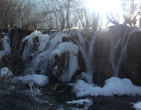 冬季的九寨沟环保车是去不了森林的,因为大雪一般都考虑游客的安全,最远的这条线是来到箭竹海的位置,这里紧挨着一个瀑布,就是箭竹海瀑布,瀑布是小型的,可以说是迷你型的小落差瀑布,水声清脆,哗啦啦的,真...