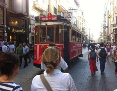 这里是伊斯坦布尔靠近塔克西姆广场一个必须参观的地方,非常长的购物街,有几百家商铺,还有很多的餐厅和快餐店,需要走很长的路,街道往返有电车,马路上没有交通工具,但是行人的交通非常拥堵。