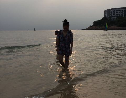 看天气蛮不错的,就一个人跑去南沙湾,沙滩还真不错的。挺适合亲子或者散心的。