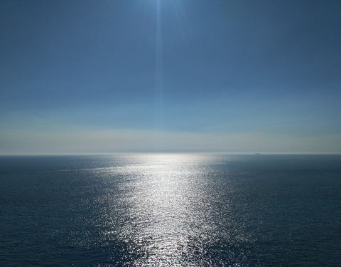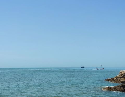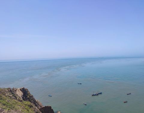 旅顺黄渤海分界线,在辽东半岛最南端;山顶上有一座航海灯塔,有着百余年历史。天与海相望,蓝色海面会呈现在眼前,风光如此美。景区有炮台、小动物散养区、佛手礁、吉翔栈道等观景点。到达景区有一段路,经过一段石阶,旁边是蓝色栏杆,到达海边观景台。海天一色,有船支在海上劳作。建议游览2~3小时