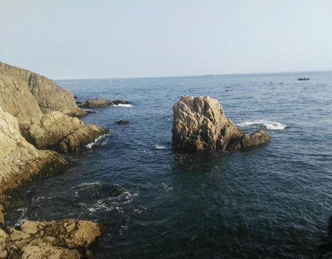 离市区不近,交通不是很方便,然后我不知道抽了什么疯居然会想到从大连医科大学骑车去黄渤海分界线。。。结果整整骑了三个小时的车子。天气很好,分界线看的很清楚。对于学习地理专业的学生来说这里是真的非常值得一去的地方。除了分界线是独特的自然景观以外,这里还是东北地区的最南端,此外海岸地貌也比较典型