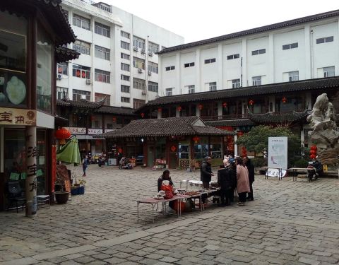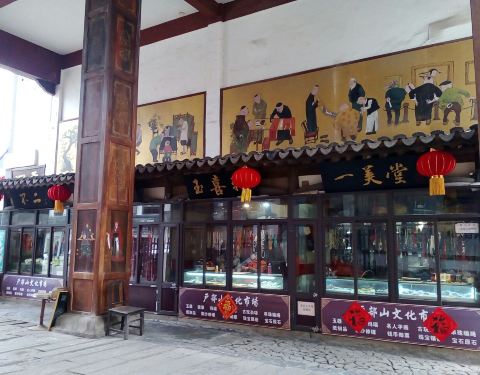 曾是古城的核心区域,附近保有成片的明清老建筑,现在经过整修,恢复了部分原貌,有当地最大的文博产品市场
