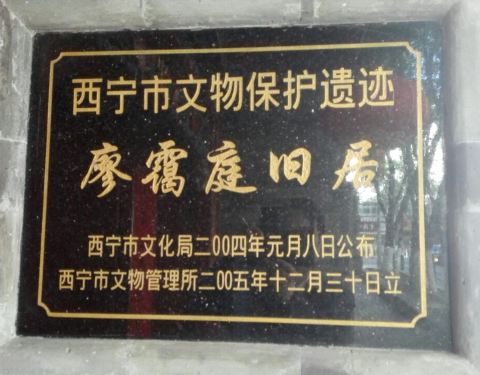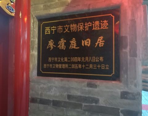 廖霭庭旧居建于1945年,是一栋具有浓郁老西宁特色的民居。旧居用当地人称的“水磨青砖”建造,经历了六十多年的风雨,摸上去手感依然十分细腻、平整。这是一座四合院带偏房式古建筑民居,整体建筑色彩呈现暗橘红色,北正房阁楼、东西耳楼、东西厢房及过庭、大门等建筑。推开厚重的朱红色大门,里面别有洞天,甬道两侧墙面上下两排的精美砖雕叫人赞叹不已。菊花、梅花、葡萄、石榴、牡丹,或方形或扇形的造型为墙面平添几许生机。古式家具及生活用品的摆设、庭院和室内的总体观感与当年相同。二层主楼,木栏杆、东西房的木式框架结构、青砖雕花、东西角楼、照壁、院内花园等,都保持了原貌。特别值得一提的是院内的那口古玉井,依然被保存至今。 现在已经是私房菜馆,做的是青海饭菜,味道一般,吃过一次,不好吃,环境不好!已经不是旅游景点了!!