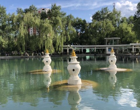 大同县城里的这处桥头公园面积还不算小呢,环境也挺美的,有假山凉亭,有湖水,湖边杨柳依依,微风吹过来,湖水泛起涟漪,坐在湖边赏美景很爽,公园里面还有一大片美丽的格桑花,公园免费开放的。