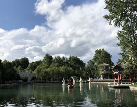 大同县城里的这处桥头公园面积还不算小呢,环境也挺美的,有假山凉亭,有湖水,湖边杨柳依依,微风吹...大同县城里的这处桥头公园面积还不算小呢,环境也挺美的,有假山凉亭,有湖水,湖边杨柳依依,微风吹过来,湖水泛起涟漪,坐在湖边赏美景很爽,公园里面还有一大片美丽的格桑花,公园免费开放的。