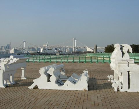园内的靠海侧皆铺设砖道供游客散步,可望见对岸的品川码头并一饱东京港美景,甚至天气晴朗时可远眺富士山,视野状况比御台场海滨公园更佳。