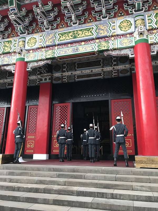 相对于中正纪念堂华丽的帽子,眼花缭乱的耍枪,这里更加肃穆简洁。我正好是在整点达到,看到了一次卫兵交接