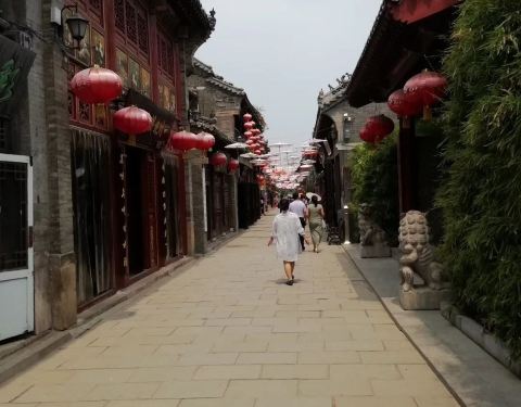 大街好多都是古老的建筑保存下来的,有些也都是后人新修建的。走在大街上很有历史的感觉。沿街有许多小吃还有当地特色的手工艺纪念品等,有丝绸、香烟还包含了很多近代的东西 手工泥塑小人、现代景区都会有的纪念品,还有童年时期的小玩具,有一种现代与古代碰撞的感觉,体会各个时代的回忆。