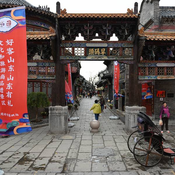 周村古城旱码头原名周村古商城,素有“天下第一村”之称,位于山东省中部,属山东省淄博市辖区之一。周村区区域总面积307平方公里,人口34.3万,辖5个镇、4个街道、1个省级经济开发区、257个行政村居(含文昌湖旅游度假区,总面积96.5平方公里,人口5.2万,2个镇、36个村),是一座历史悠久又充满活力的现代化工商业城市。