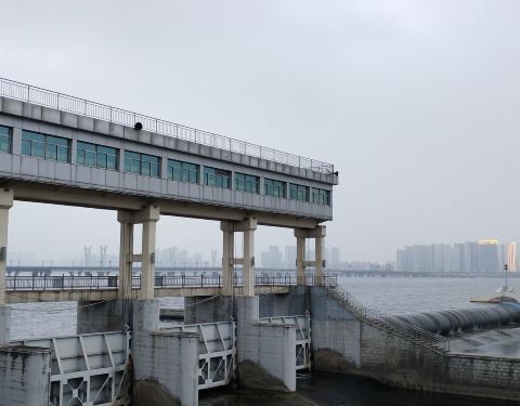 亚洲第一橡胶坝,开闸放水的时候很壮观,周边沿河景观房绿化非常好,空气很好,有很多健身器材分布,适合锻炼身体,适合锻炼身体!