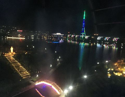 2016年8月底来庆云游玩,住在北海公园湖畔的祥云酒店,晚上到北海公园散步。公园灯火通明,夜景十分好看。公园周边都是小饭馆,因为是夏天,以烤串居多。公园门口也有很多卖小吃的商贩,可以尝尝当地的。公园散步和健身的人不少,也有很多带着孩子来玩各种游乐设施的。摩天轮的霓虹灯色彩变幻,价格也不贵,20元约7分钟。