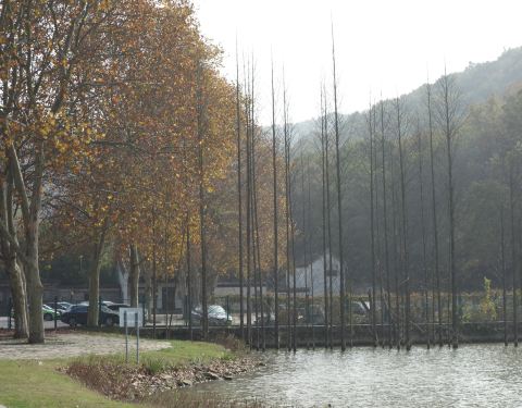 招隐景区是南山的一部分。景区外的亭台楼阁,湖水荡漾,在秋色的装扮下已经令人陶醉。