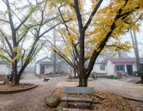 几年前去过一次,季节有些过了,又是雨天,不是很尽兴,这次补上了,天气好的很,银杏叶黄的震撼,很有气势的古树林,搭配散落其间的民房,气质立现。