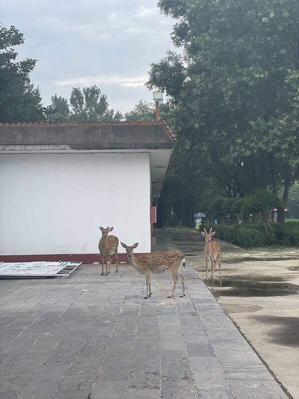 关于这里我们其实犹豫了很久,大部分人都是先去博物馆,然后坐摆渡车去宗庙和王陵,包括也听说王陵比较远,而且好多都回填了不值得去之类的,纠结了很久,还是靠着一句“来都来了”,去过后只想说:值得! 殷墟博物馆是一个门票,宗庙和王陵是一起,推荐联票,凭联票就可以免费坐摆渡车,不过也不贵,免票人群跟司机直接买就可以。 博物馆和王陵是8点半开门,宗庙8点就开了。我们选择了倒着走,从住处直接打车去了王陵,一早也很凉快。来的时候就想能不能看到小鹿们,没想到一进来就是,巨巨巨可爱!!!天了噜!冲这几只小鹿也值得!恰好带了面包,一只胆大的先过来,吃的非常温柔,后来还凑过来一只小朋友,吃完了还意犹未尽地舔手。我的感受是非常温柔非常幸福,她们也不会猛冲狂抢的,大家可以自己衡量~随着草地就会有很多展示和介绍,还有几个馆可以参观了解应该是一些回填,现在已经藏在草丛里了我们快九点到的,看得还算仔细还喂了半天鹿,完全可以赶上第一班