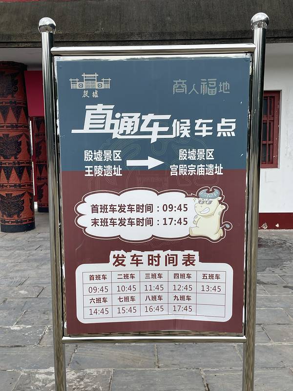 🚌:殷墟宫殿遗址大门附近有定点班车点,定点发车