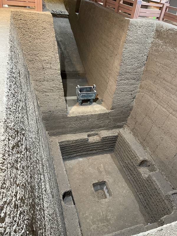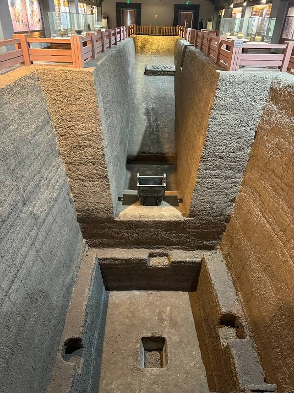 ...什么东西,就算是打卡了吧,有三间展室,里面分别有一个大墓坑,传说后母戊鼎出土的,车马坑,墓葬坑