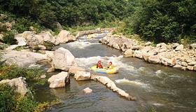 鄂豫两省交界的地方有一座山叫桐柏山,主峰名曰太白顶,海拔1140米,它是鄂豫两省随州境内的分水岭,东边有一高峰叫做玉皇顶,山下有条河叫龙潭河——玉龙西游记漂流便置身其中。这里是连接我国南北气候的分界线,也是南北动植物混杂共处的天堂:这里是优质纯净水上的冲浪,这里是冰川遗迹上的漂流;是洞察淮河源头的神秘和洁净的地方。